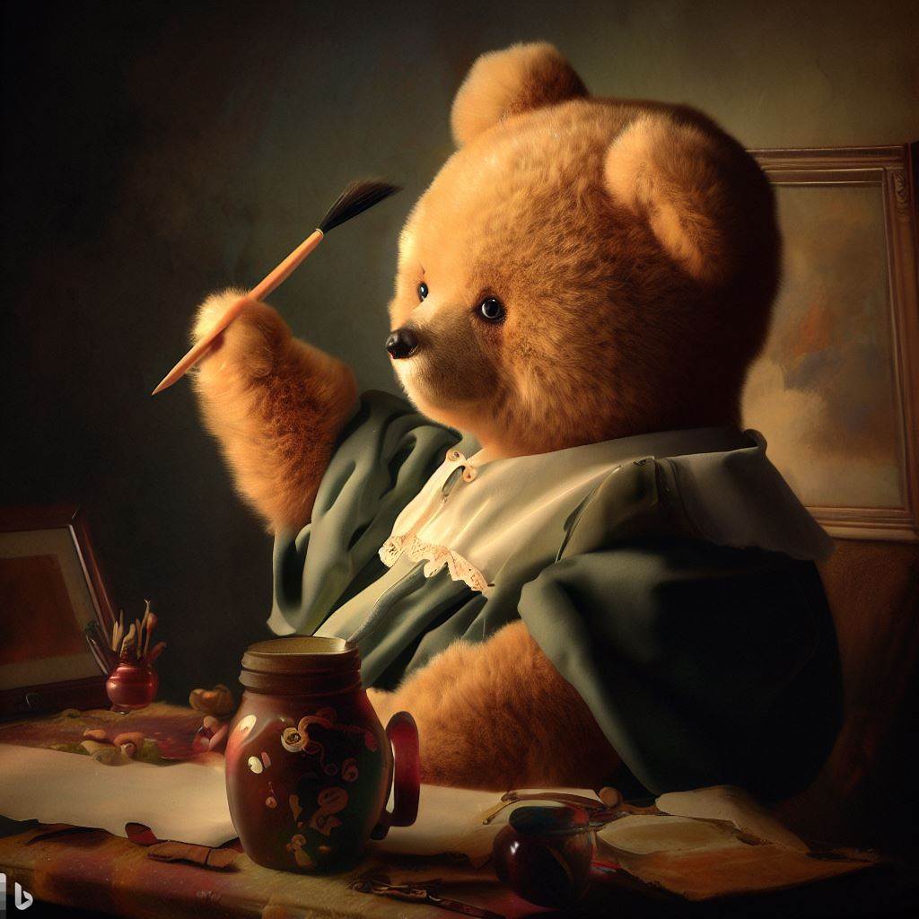 Puedes pedir, por ejemplo, una pintura de un osito de peluche con diferentes estilos, por ejemplo, pintura estilo renacentista