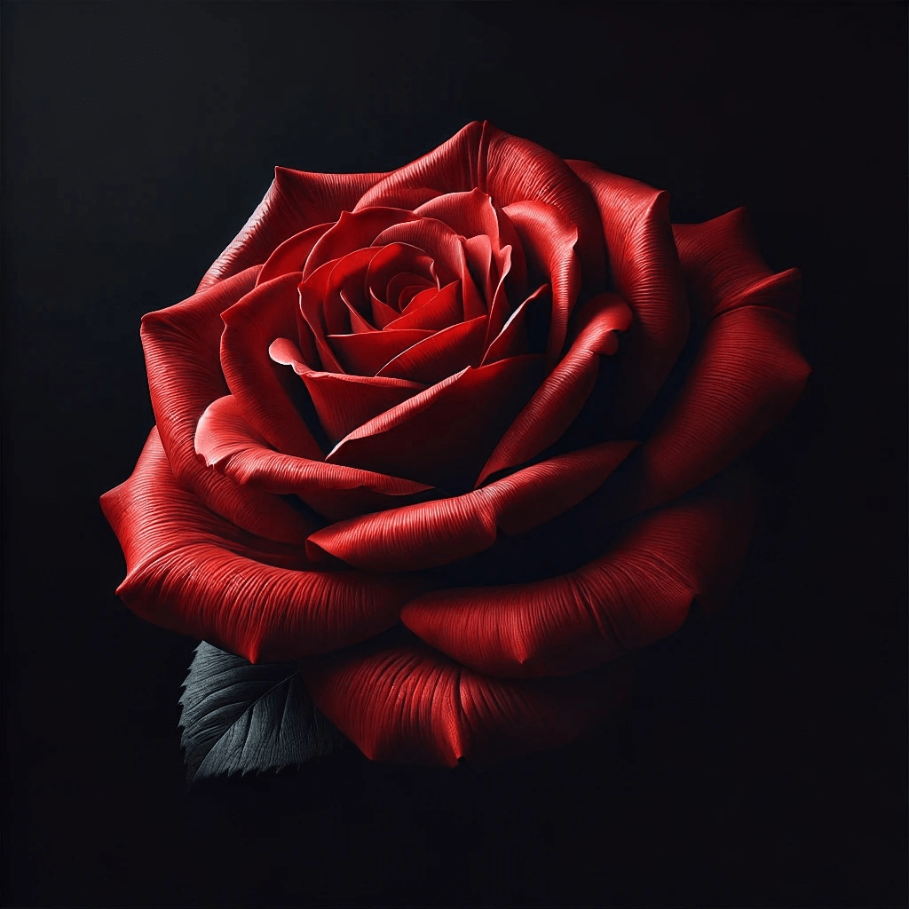 - Contrastes visuales: «Una rosa roja brillante sobre un fondo completamente negro.»